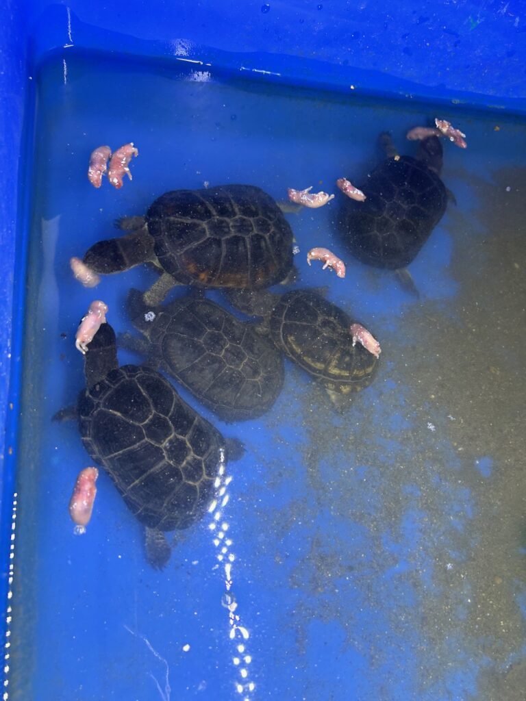 ヒメハコヨコクビガメ今年2クラッチ目です。 ご褒美にピンクマウス与えます♪今回は有精卵かも☺