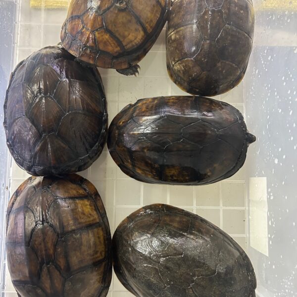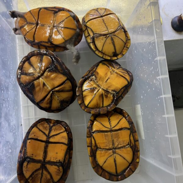 ホオアカドロガメの繫殖セットになります。 右下が♂になります。 入荷して三年ほどになります二年目から産卵し無精卵が多いですが、年に5匹ほど子亀が取れています。 ※ばら売りはしませんので、宜しくお願い致します。 動画や画像見たい方 LINEまで ID sk420818